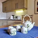Die Gäste haben Zugang zu Selbstversorgungsmöglichkeiten wie einem Kühlschrank und Küchenutensilien in einer voll ausgestatteten Küchenzeile.